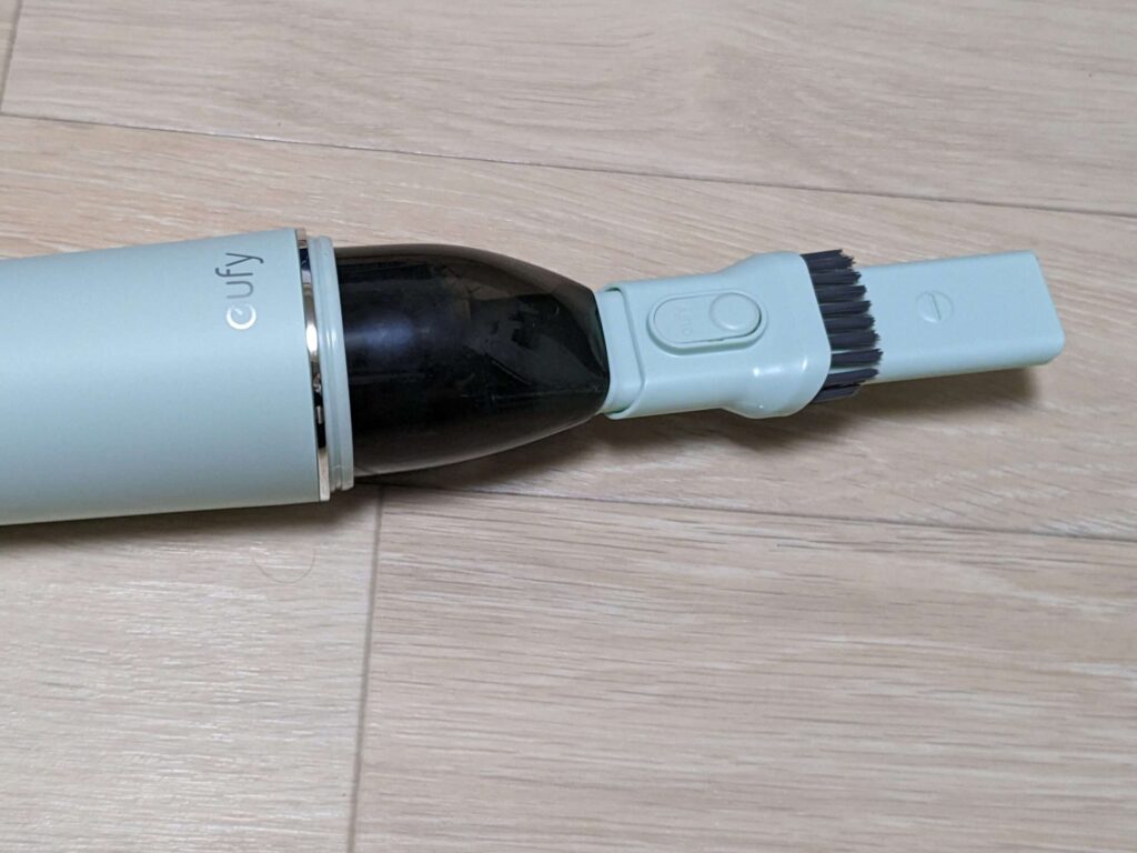 この製品の2つ目の良い点は、クリーナーとしての性能です。5500Paの吸引力があるので、机の周りのホコリなど、お掃除ロボットが届かない場所の掃除には十分です。バッテリーの違いとかがあるんだろうけれど、電池式のものとは明らかに吸引力が違う…!久しぶりにちゃんと吸引できるハンディクリーナー使ったなあ。