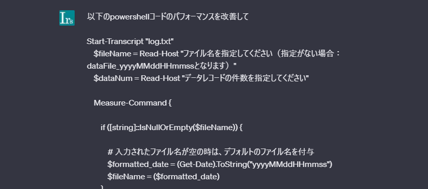 ChatGTPに業務用ツールの性能改善をお願いしてみた