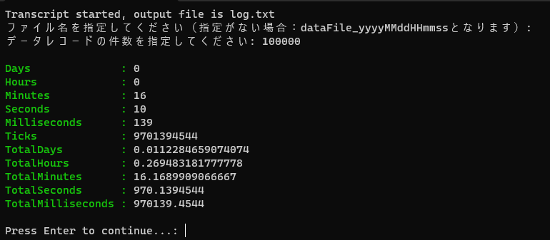 TotalMilliseconds : 970139.4544処理にかかった時間は16分10秒だった。