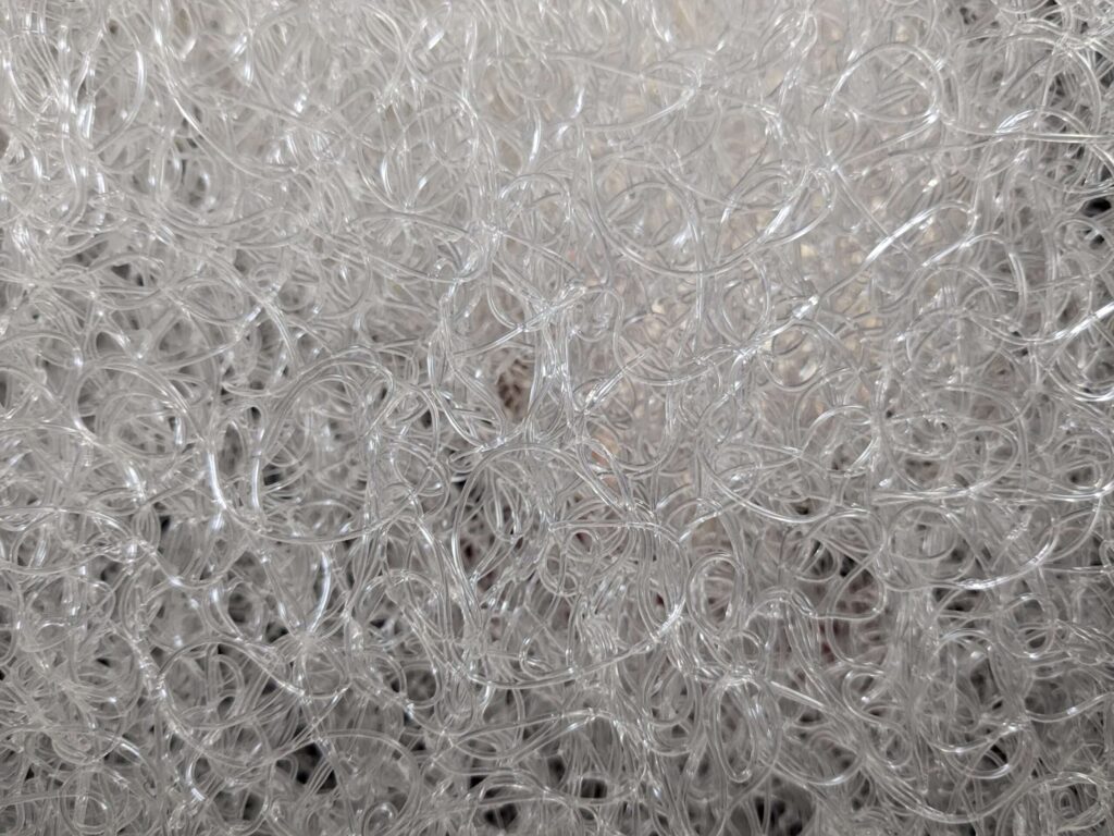 見た目はカスカスな感じがするけれど、かなり弾力があります。この弾力性のお陰か、低反発の枕と比べ頭と首が支えられているような感覚がありますね。