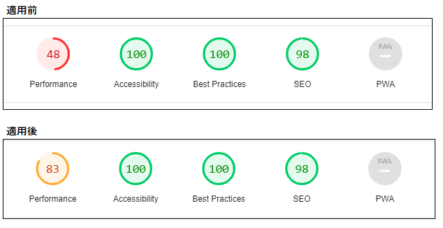 さらに、Lighthouseのスコアも確認していきます。