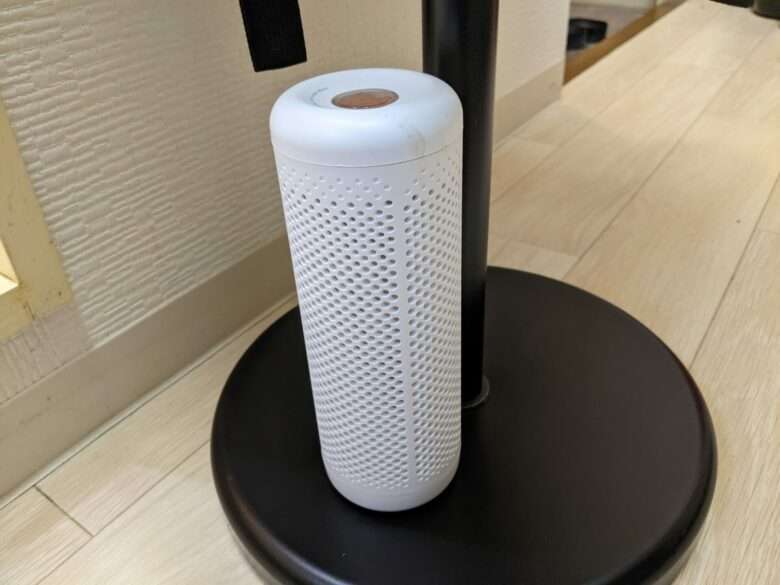 コードレスタイプなので、一度乾燥したら色んな所に置けるのがメリット。自分はクローゼットに2つ、バッグハンガーに1つ、玄関に1つ設置している。コンパクトなので、配置もし易くデザイン的にも邪魔になりづらいのが気に入っていたり。